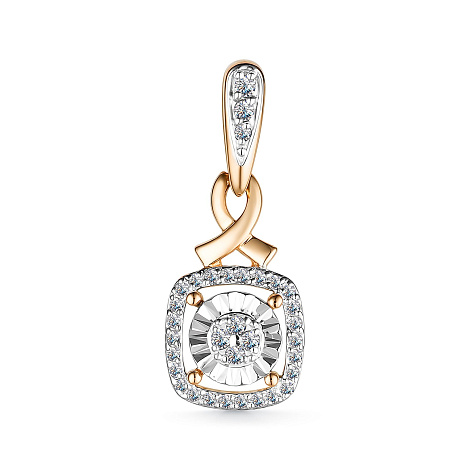 Элегантная подвеска, украшенная россыпью бриллиантов, выполнена с сочетанием красного и белого золота 585 пробы