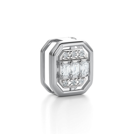 Подвеска-бегунок из белого золота 585 пробы из коллекции Illusion компании "Алькор" — это изящное воплощение оптической игры света и формы. Холодный блеск металла подчёркивает утончённость композиции, где круглые и багетные бриллианты создают эффект глубины и визуального объёма. Современный и стильный акцент, который придаст вашему образу лёгкость и утонченное сияние. Средняя характеристика камней: 6 Бриллиант Круг 57 0.025 3/5 3 Бриллиант Багет 25 0.093 3/5 В комплект поставки входит: