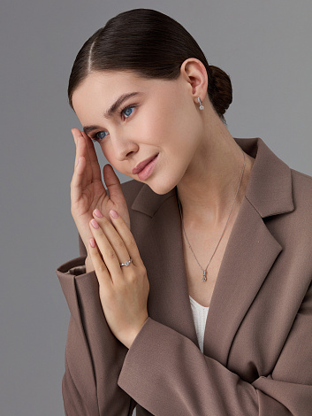 Декоративное украшение из белого золота 585 пробы из коллекции Romantic компании «Алькор» — это утончённое сочетание чистоты металла и сверкающего огня бриллиантов