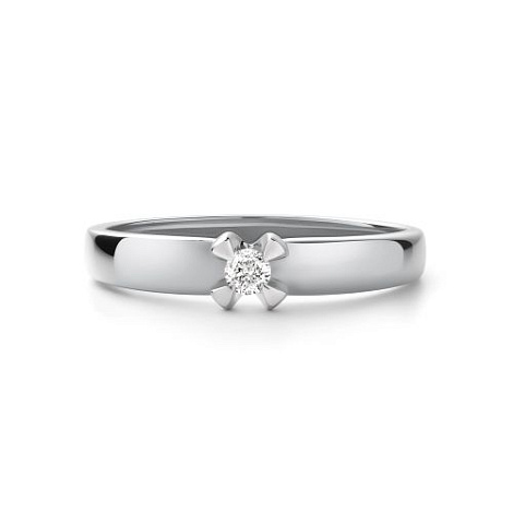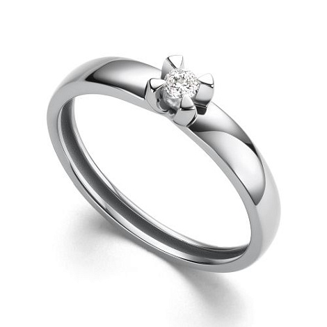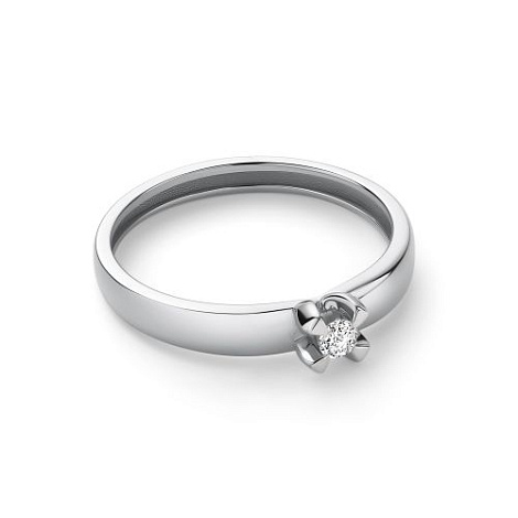 Помолвочное кольцо с сверкающим бриллиантом выполнено из белого золота 585 пробы