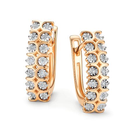 Элегантные серьги украшенные дорожками сверкающих бриллиантов из красного золота 585 пробы. Надежные закрепки обеспечивает максимальный контакт камней с лучами света для достижения большего блеска. Серьги универсальные и подойдут как для более торжественных, так и для повседневных образов. Тип замка - английский, самый надежный и удобный. Изделие представлено брендом "Алькор". Средняя характеристика камней на артикул: 28 Бриллиант Круг 57 0.083 4/5 К украшению прилагается сертификат от производителя о подлинности драгоценных камней В комплект поставки входит:
