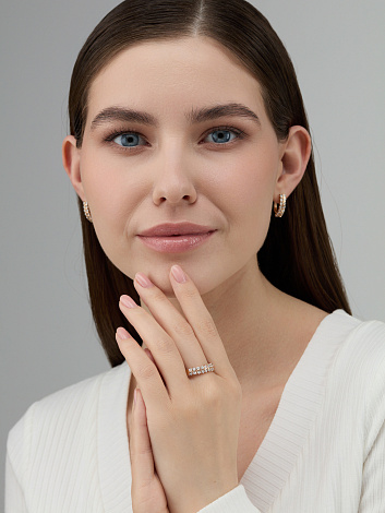 Элегантные серьги украшенные дорожками сверкающих бриллиантов из красного золота 585 пробы