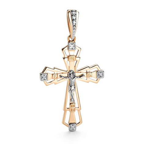 Подвеска в виде креста, в котором исполнены все каноны Православной церкви, выполнен с сочетанием красного и белого золота 585 пробы