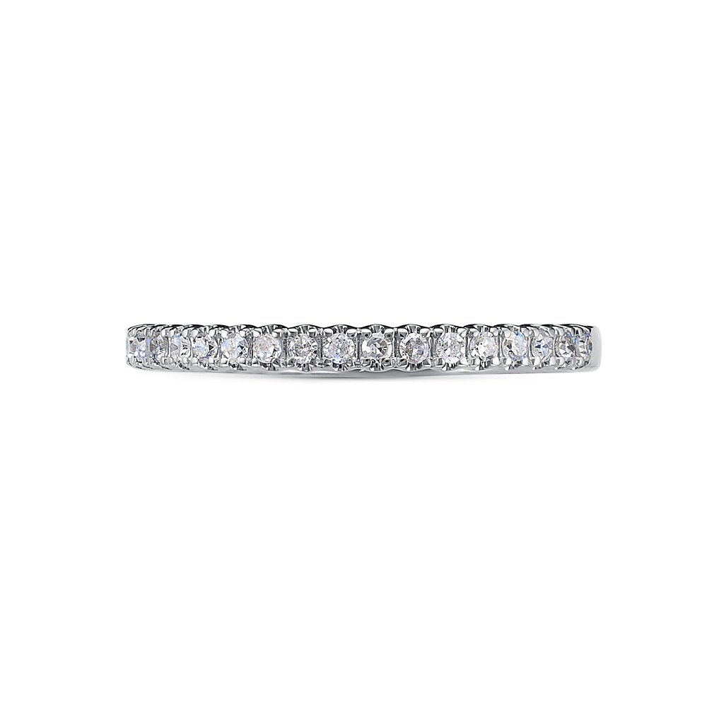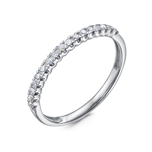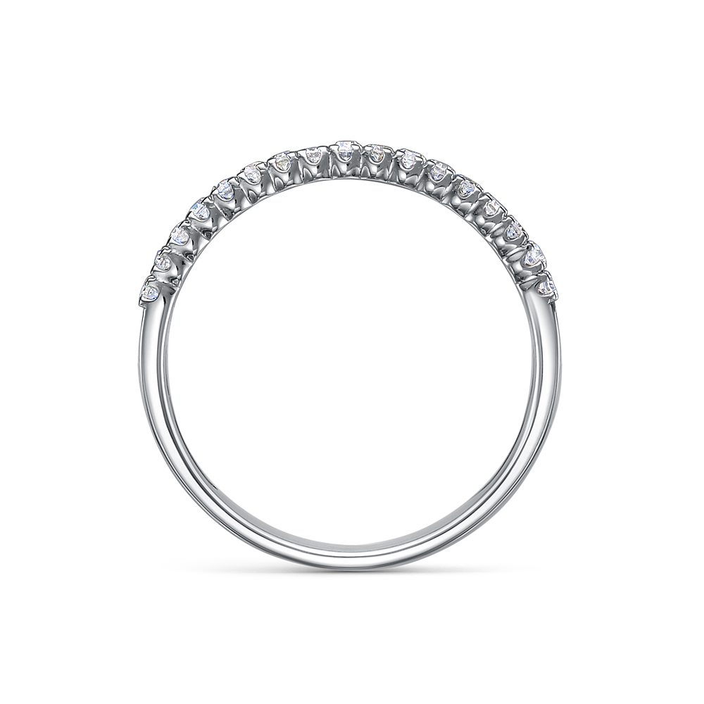 Кольцо, украшенное дорожкой сверкающих бриллиантов, выполнено из белого золота 585 пробы