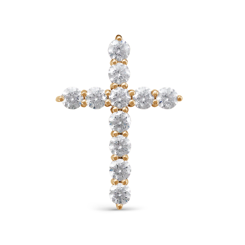 Подвеска из красного золота 585 пробы выполнена в форме креста и украшена крупными бриллиантами
