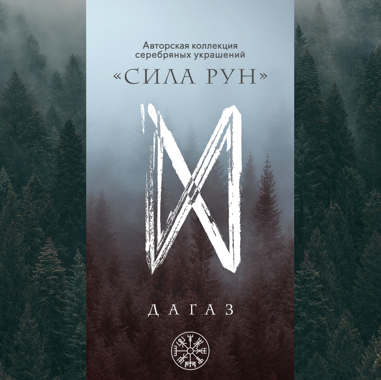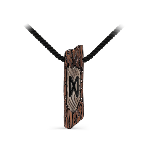 Колье на лавсановом чёрном шнуре с подвеской украшенной руной "ДАГАЗ", выполненной из серебра 925 пробы