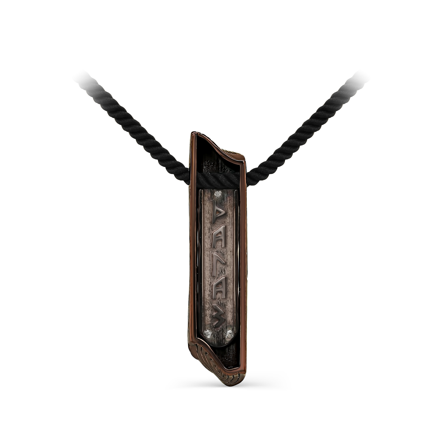 Колье на лавсановом чёрном шнуре с подвеской украшенной руной "ДАГАЗ", выполненной из серебра 925 пробы. Подвеска украшена керамикой чёрного цвета и золочением, такое украшение выглядят ярко, стильно и смело. Изделие представлено брендом KABAROVSKY. Вставки: Керамика. В комплект поставки входит: