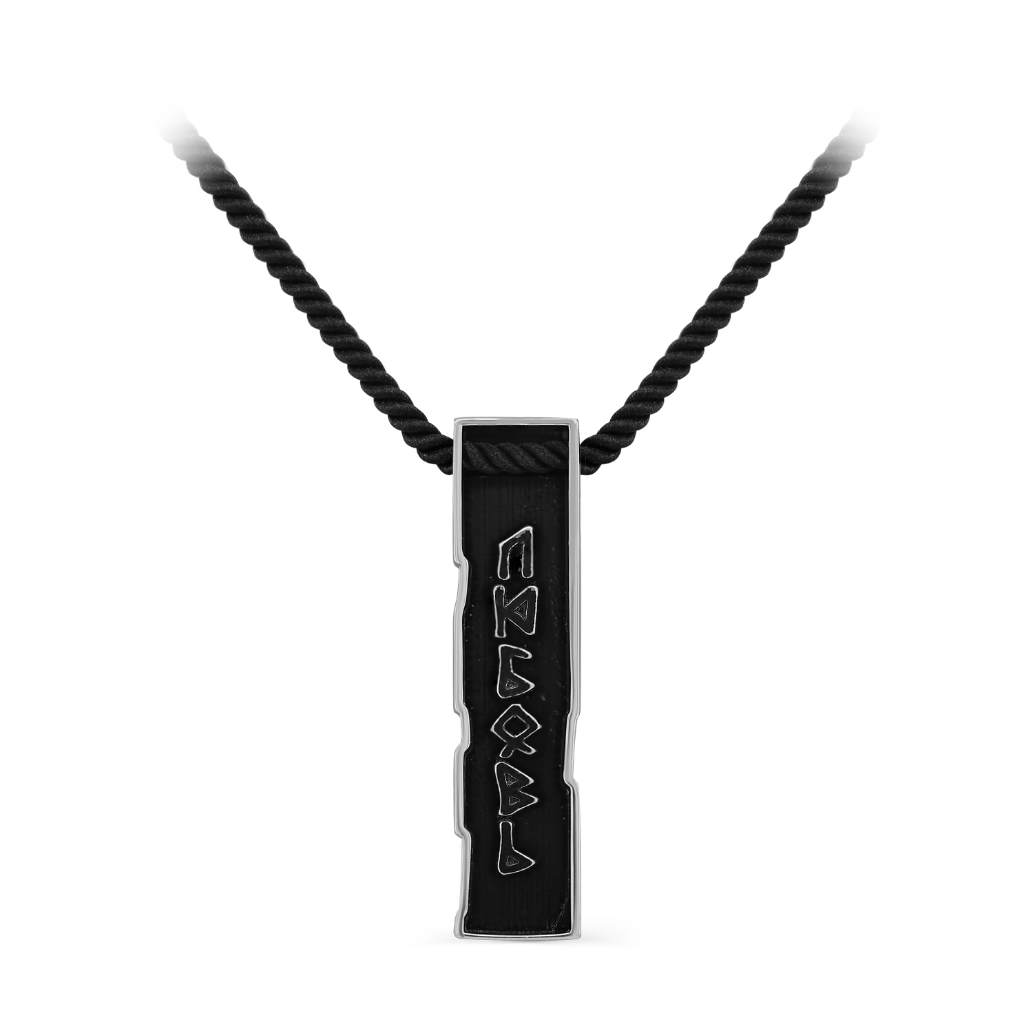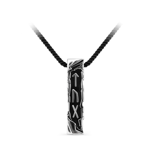 Колье на лавсановом чёрном шнуре с подвеской украшенной надписью "ЛЮБОВЬ", выполненной из родированного серебра 925 пробы с керамикой