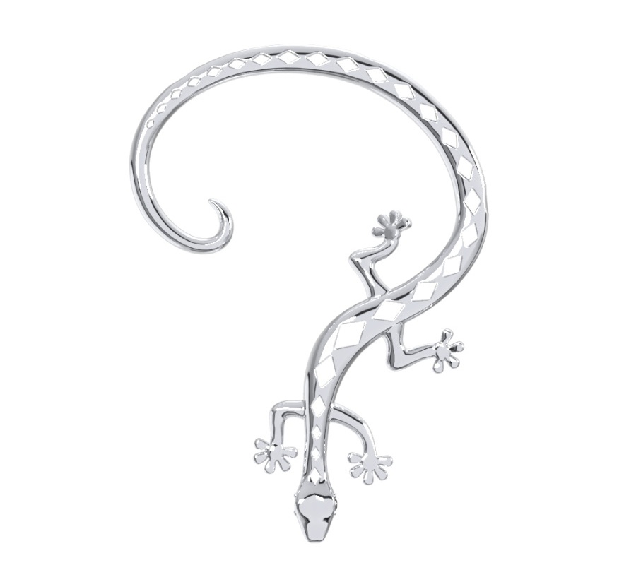 Одиночная серебряная серьга выполнена в виде любопытной ящерицы, изготовленной из качественного серебра 925 пробы