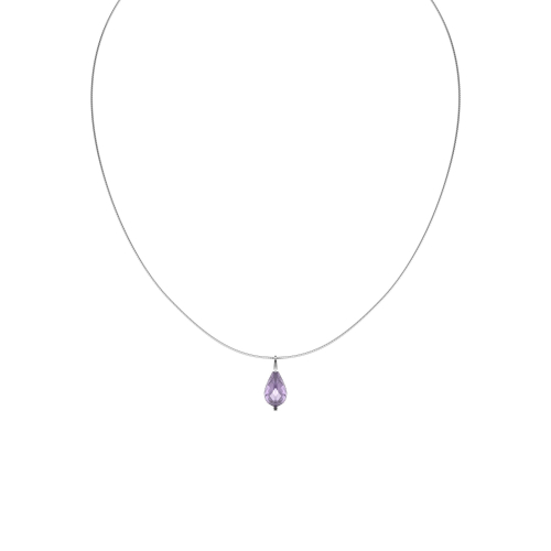 Цепочное колье с подвесной частью, украшенной аметистом, выполнено из родированного серебра 925 пробы