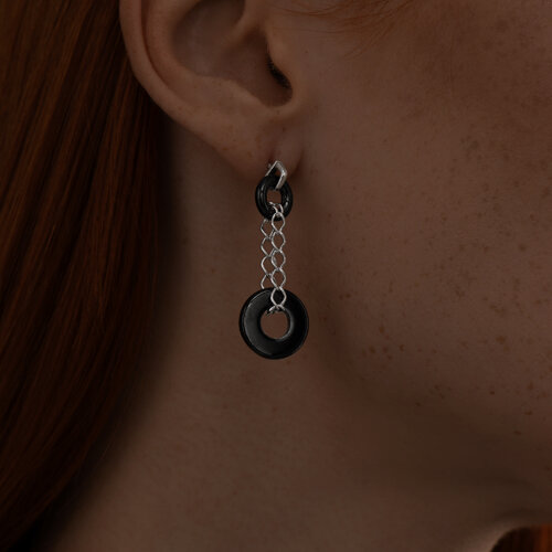 Стильное и современное украшение из серебра 925 пробы. Керамические вставки черного цвета придает серьгам особую привлекательность и эксклюзивность. Такие серьги подойдут как для повседневного ношения, так и для особых случаев, добавляя образу свежести и оригинальности. Представлено брендом SOKOLOV. Вставки: 2 × Керамика недраг Черный Круг В комплект поставки входит: