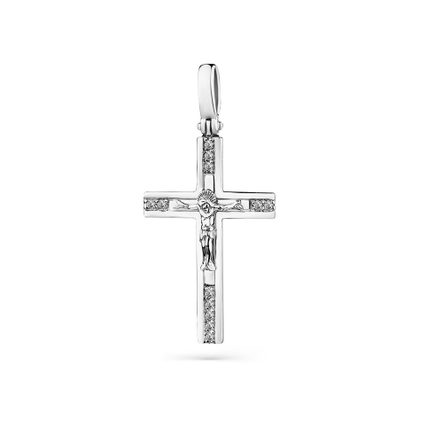 Православный крестик из белого золота 585 пробы. Характеристика вставки: 12 Бр Круг 0,047 В комплект поставки входит: