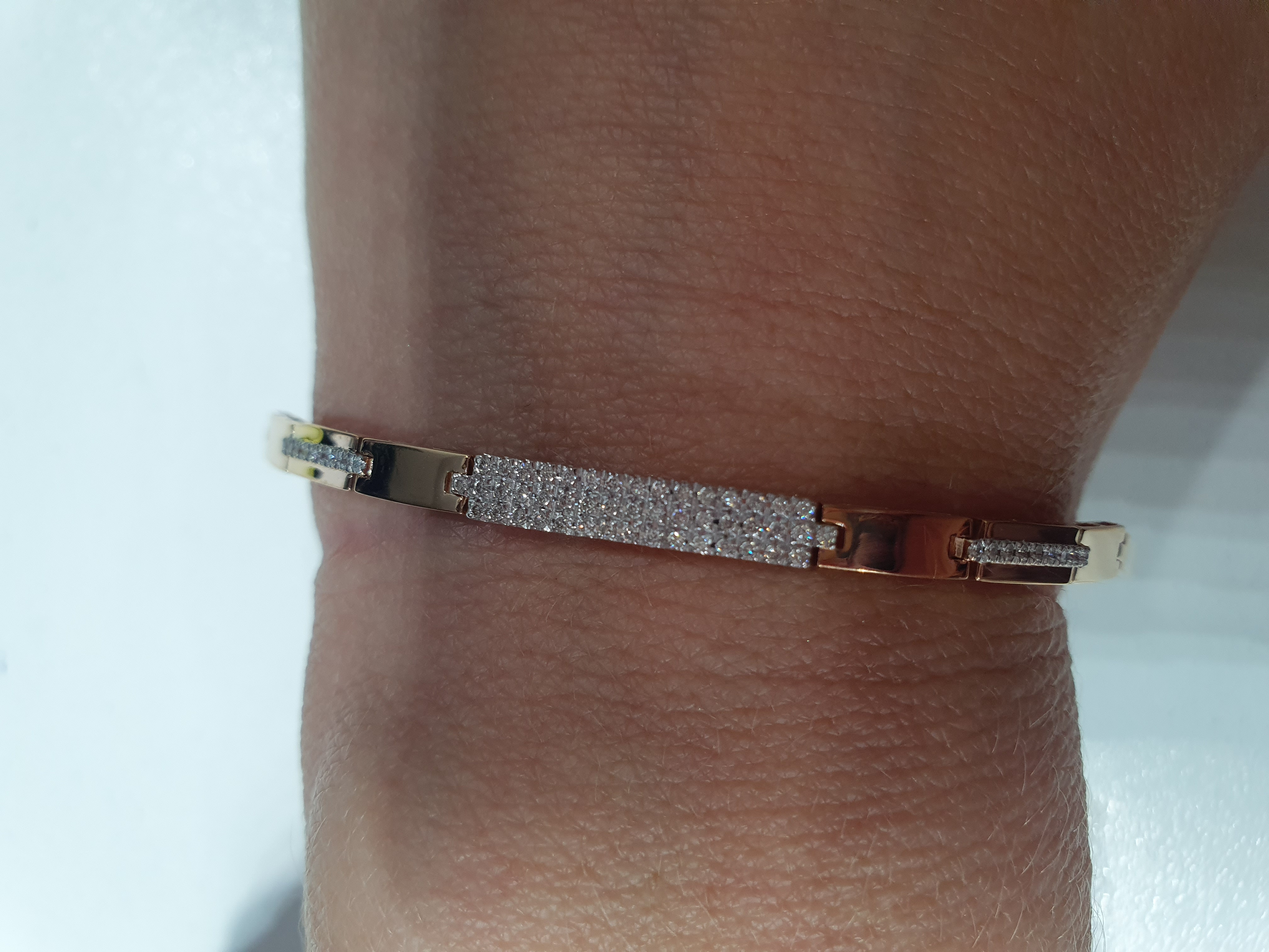 Стильный и лаконичный браслет из красного золота 585 пробы с сверкающими бриллиантами