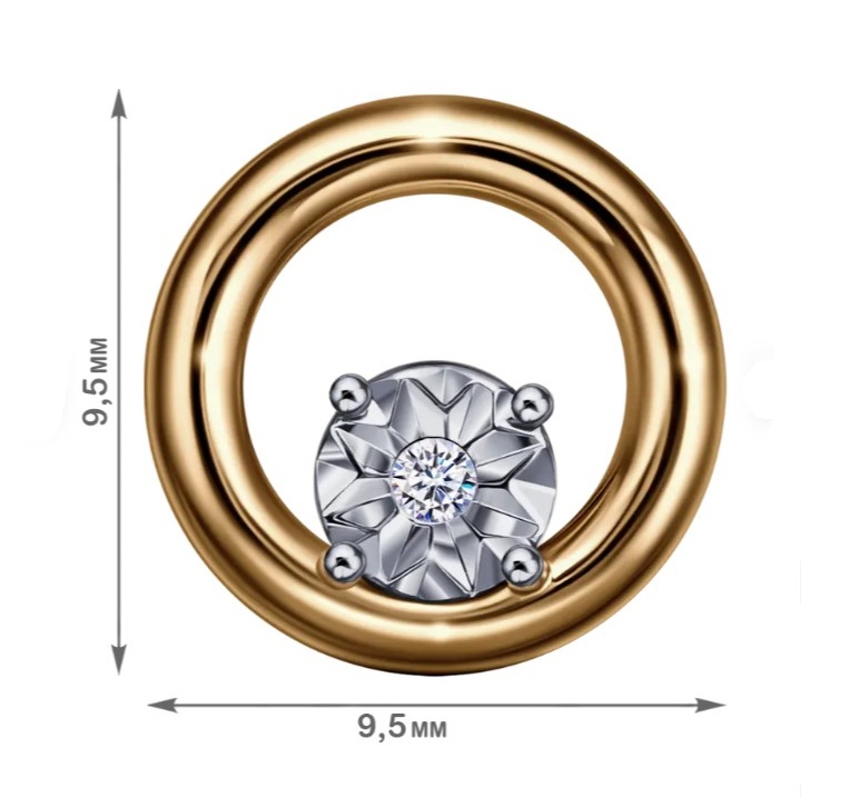 Элегантная подвеска-бегунок выполнена из благородного красного золота 585 пробы и украшена сверкающим бриллиантом, установленным в белой золотой оправе