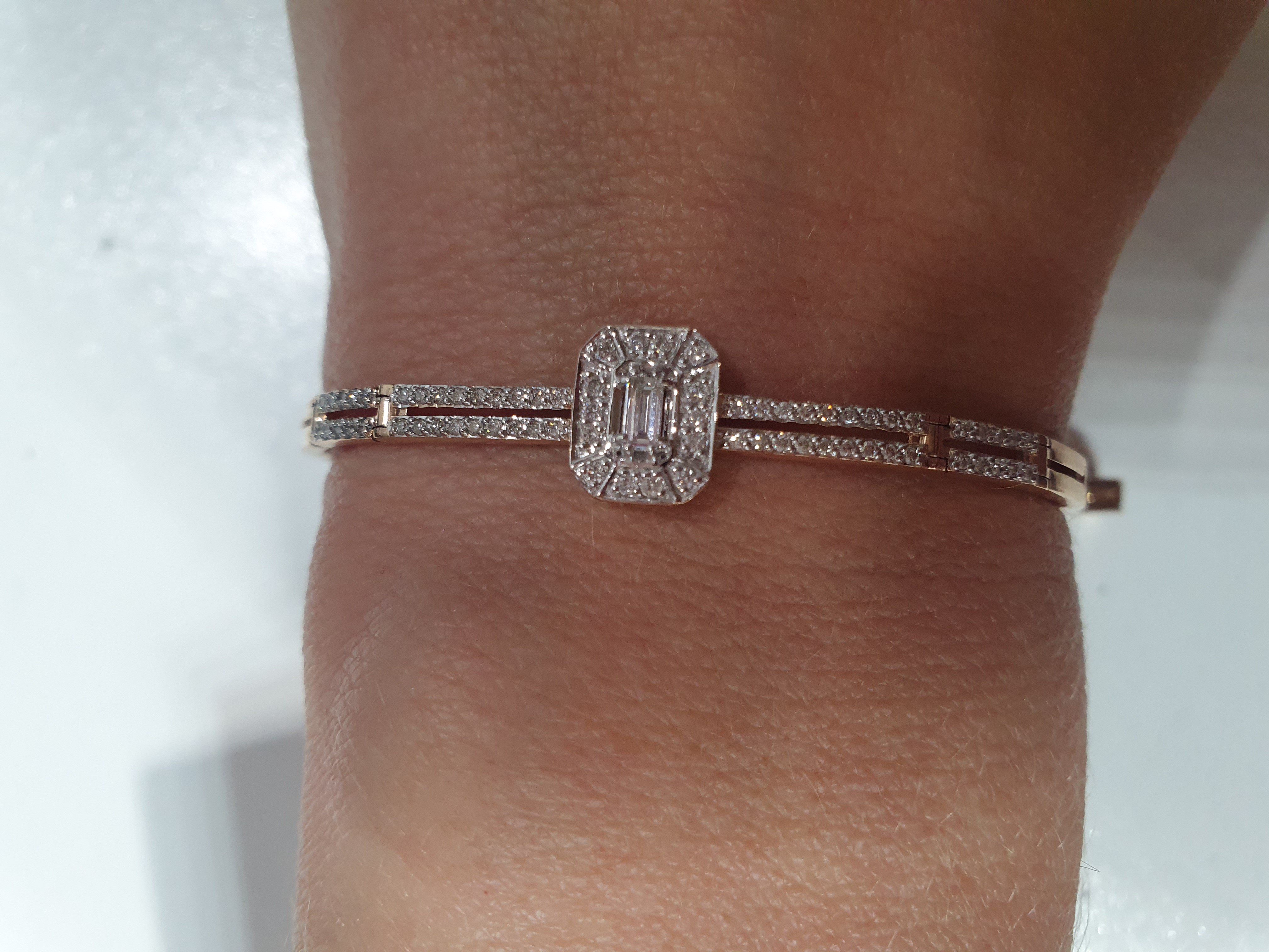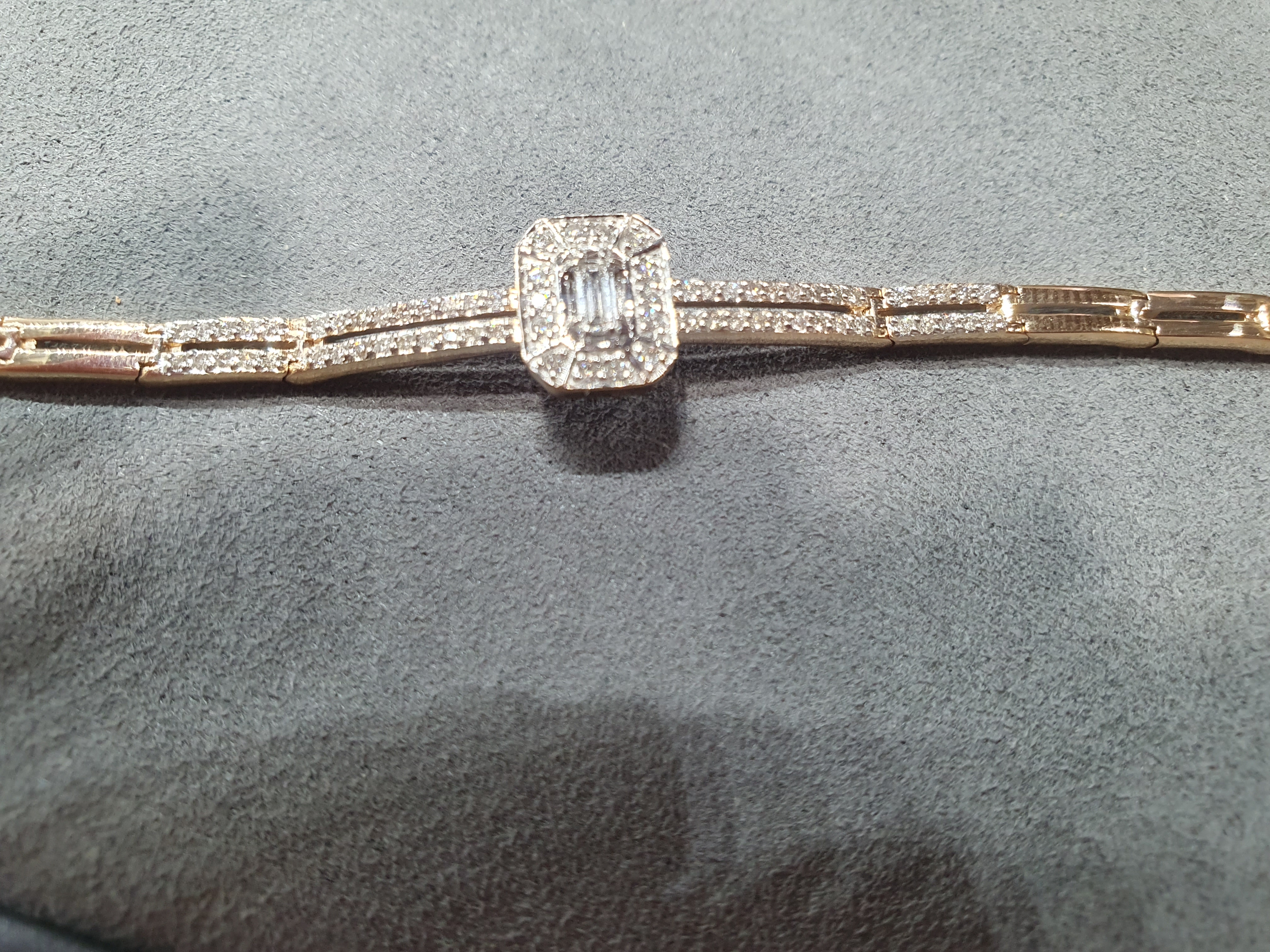 Покупкой довольна на 100%! Шикарно смотрится на руке. У центрального камня огранка "багет " в обрамлении мелких бриллиантов. Он роскошный!