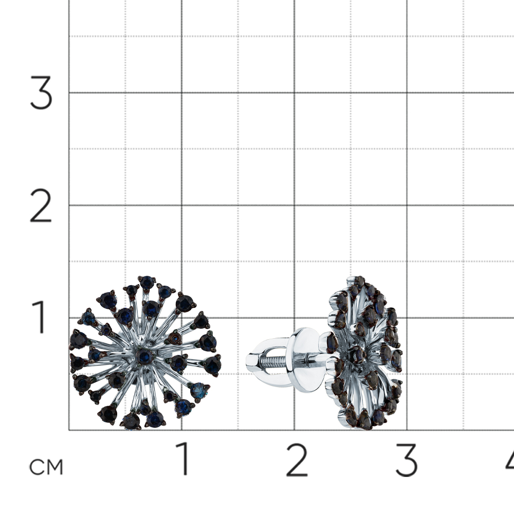 Центральным элементом серег является великолепный сапфир, окруженный множеством мелких сапфиров, создающих эффект цветочного бутона. Эти сапфиры переливаются глубоким синим цветом, напоминая о бескрайних небесах и морских глубинах.