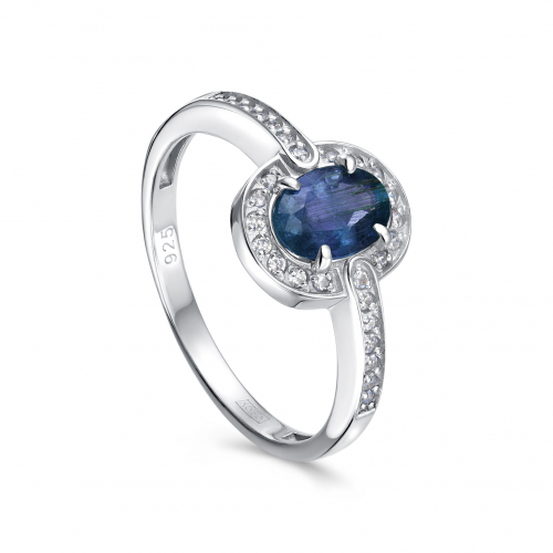 Серебряное кольцо с сапфиром и фианитами сочетает в себе глубину синего сапфира и сияние фианитов, создавая гармоничный и стильный образ