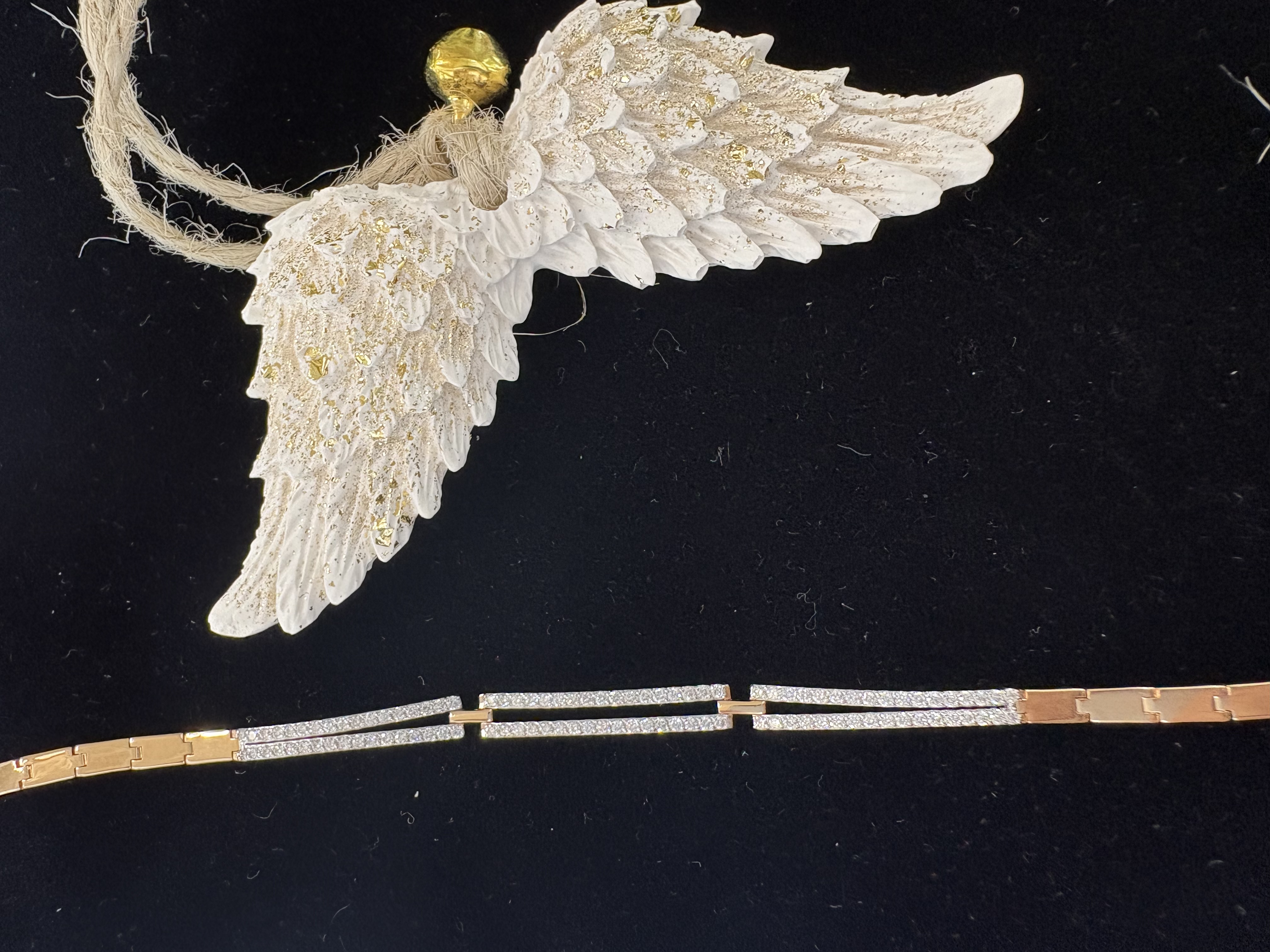 На изображении представлен браслет из розового золота с инкрустацией бриллиантами