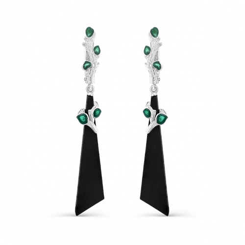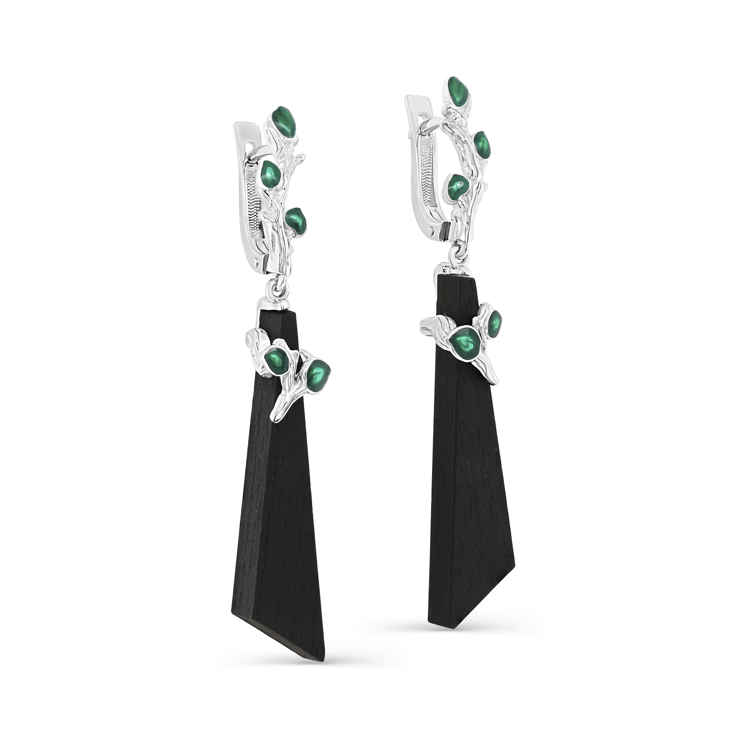 Удлиненные серебряные серьги выполнены из качественного серебра 925 пробы и украшены натуральным древесным материалом — дубом-грабом