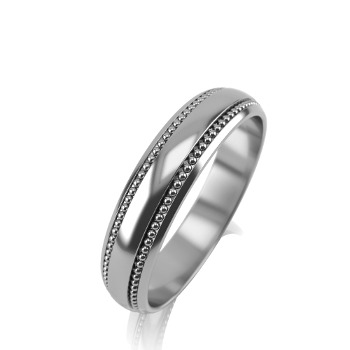 Стильное обручальное кольцо классической формы выполнено из белого золота 585 пробы с ювелирной зернью