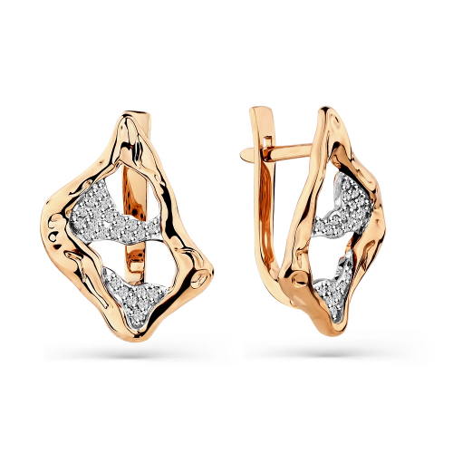 Серьги выполнены из золота 585 пробы с мятой текстурой. Они имеют геометрическую форму, напоминающую треугольник с закругленными углами. Украшение дополнено мелкими бриллиантами, которые сверкают на свету, придавая серьгам особую изысканность и элегантность. Эти серьги станут прекрасным дополнением к любому образу, подчеркивая утонченность и стиль их обладательницы. Средняя характеристика камней: 46 Бр Круг 0,165 В комплект поставки входит: