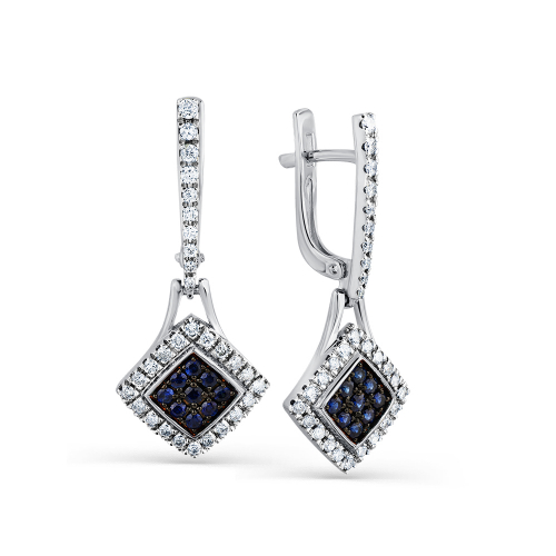 Серьги выполненным из белого золота 585 пробы, обладают изысканным сиянием и безупречной частотой линий. Центральное место в серьгах занимают сапфиры, идеально ограненные и заключенные в филигранные оправы, подчеркивающие их частоту и игру света. Бриллиантовая россыпь вокруг переливается всеми оттенками радуги, создавая ощущение бесконечного блеска и великолепия.