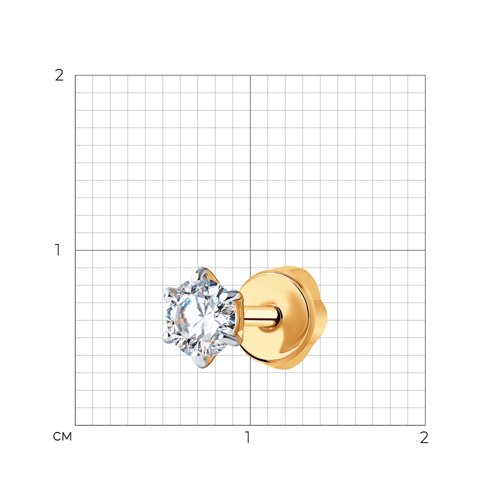 Серьга одиночная выполнена из красного золота 585 пробы, украшена искрящимся фианитом.