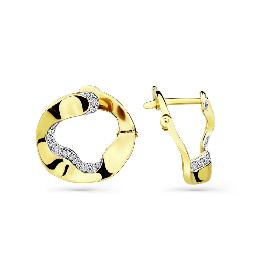 Стильные и объемные серьги выполнены из комбинированного белого и желтого золота 585 пробы