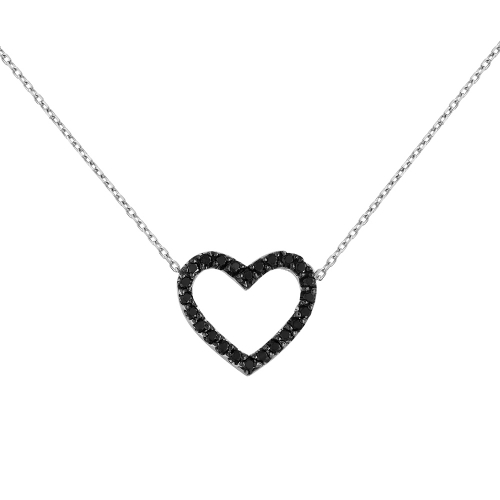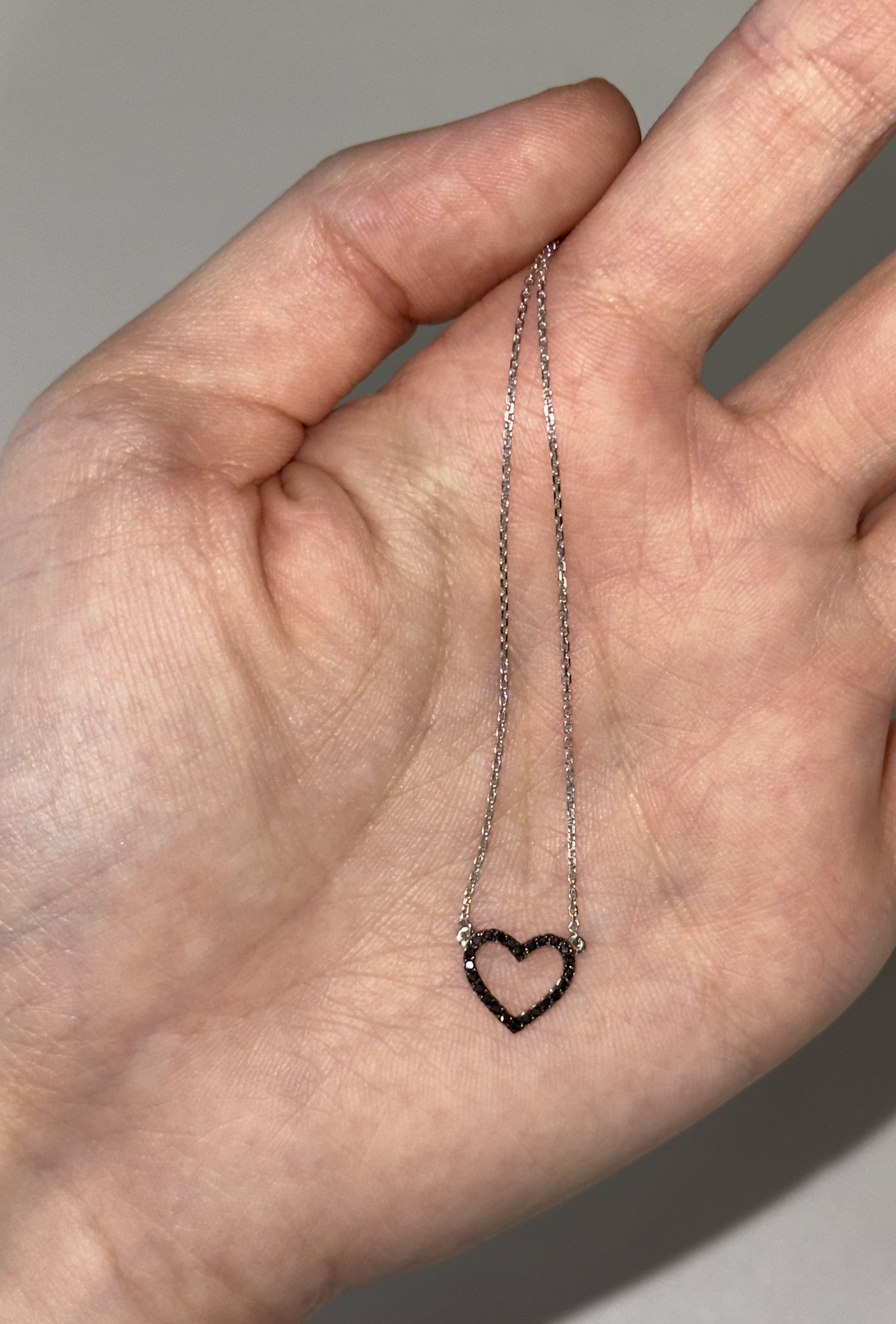 Нежное и романтичное цепочное колье украшено сердцем со сверкающими черными бриллиантами