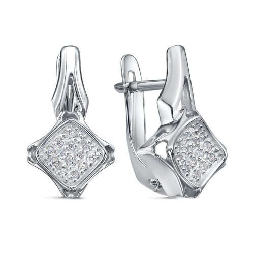 Элегантные серебряные серьги выполнены в геометрическом дизайне, оснащены надежным английским замком и украшены сверкающими фианитами