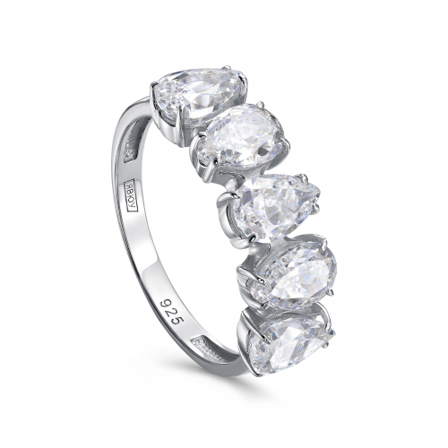 Изящное серебряное кольцо из 925 пробы украшено сверкающими бриллианитами огранки «груша»