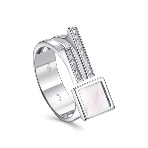 Элегантное серебряное кольцо из 925 пробы украшено нежным перламутром и сверкающими фианитами