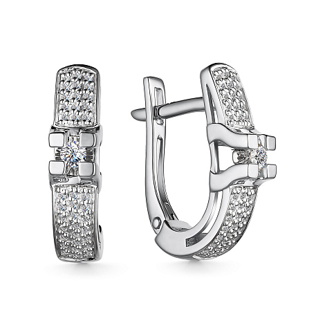 Элегантные серьги с сверкающим бриллиантом в центре, красоту и блеск которого подчёркивают дорожки бриллиантов, выполнены из белого золота 585 пробы. Бриллианты на белом золоте выглядят особенно эффектно, привлекая взгляд своим блеском. Тип замка - английский, самый надежный и удобный.