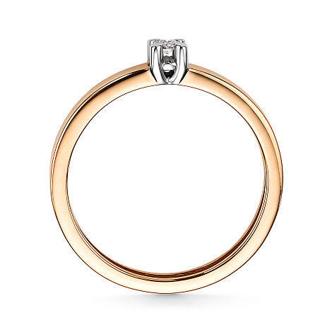 Кольцо классического дизайна с сверкающим бриллиантом, выполнено с сочетанием красного и белого золота 585 пробы
