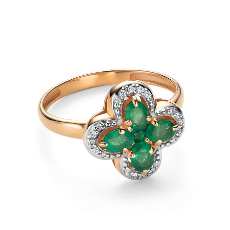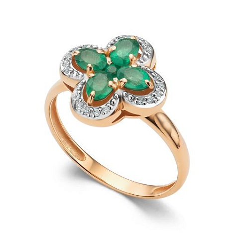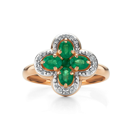 Роскошное кольцо из красного и белого золота 585 пробы с крупным изумрудом и россыпью бриллиантов