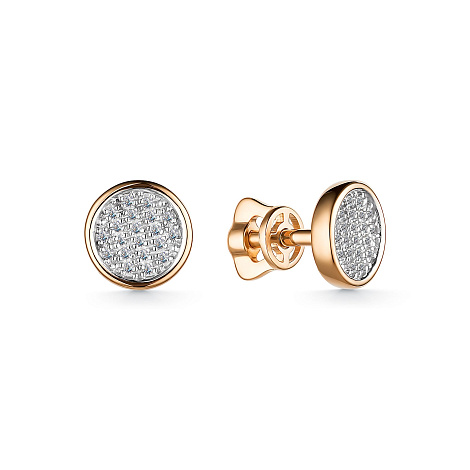 Серьги-пусеты, украшенные россыпью сверкающих бриллиантов, выполнены с сочетанием красного и белого золота 585 пробы