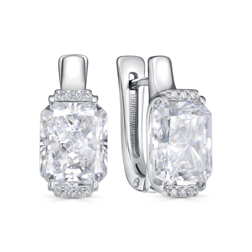 Серебряные серьги впечатляют своей элегантностью и богатством отделки. Содержат центральный крупный бриллианит, заключенный в окружение множества небольших, сверкающих фианитов. Каждый камень имеет идеальные пропорции и чистые грани, создающие фантастическое сверкание. Такое оформление привлекает внимание и производит сильное впечатление. Ультратонкая работа ювелиров сделала эти серьги особенными и подчеркнут их обладательницу как уникальную личность. Представдено брендом KABAROVSKY. Средняя характеристика камней: 2 Бриллианит Октагон 10,0х8,0|12 Фианит Круг 1,00 В комплект поставки входит: