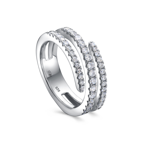 Стильное кольцо, выполнено из серебра 925 пробы, украшено россыпью сверкающих фианитов