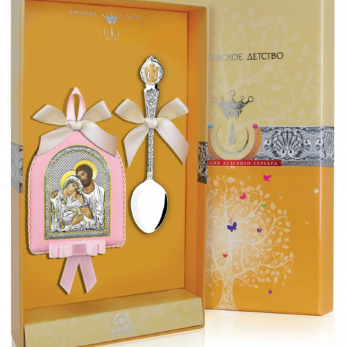 Набор детский "Св.семейство" выполнен из серебра 925 пробы. Зеркальная поверхность изделия отполирована вручную.