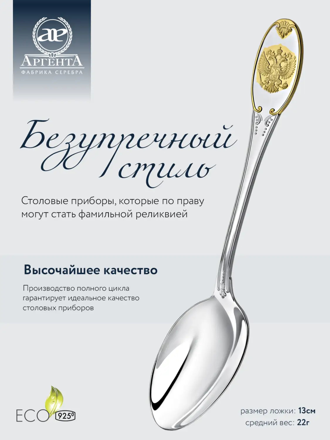 Чайная ложка выполнена в серебре 925 пробы и представлена брендом АРГЕНТА