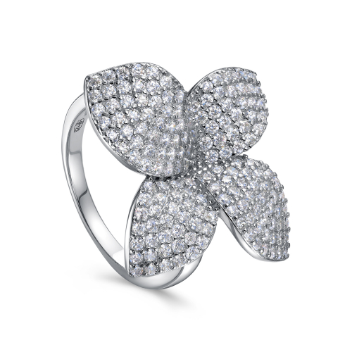 Серебряное кольцо 925 пробы в дизайне объемного цветка с фианитами — это нежное и изящное украшение, которое привнесет в ваш образ немного романтики и элегантности