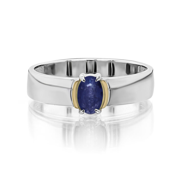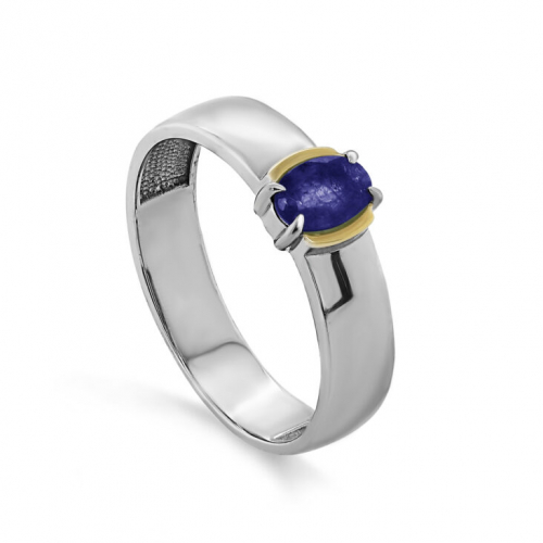 Кольцо с натуральным сапфиром выполнено с сочетанием родированного и позолоченного серебра 925 пробы