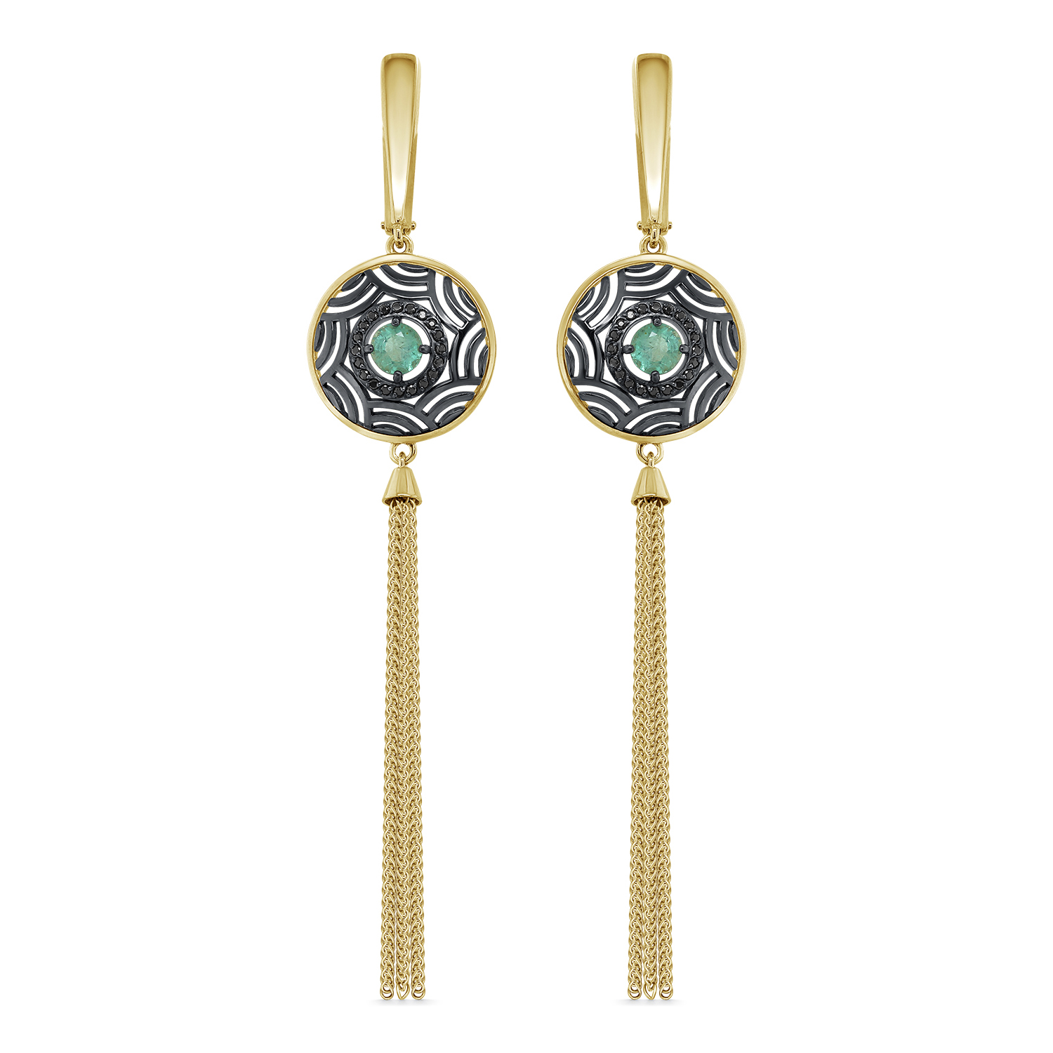 Серьги из серебра 925 пробы с изумрудами д от российского бренда Kabarovsky Украшения с драгоценными камнями изумрудами в окружение фианитов