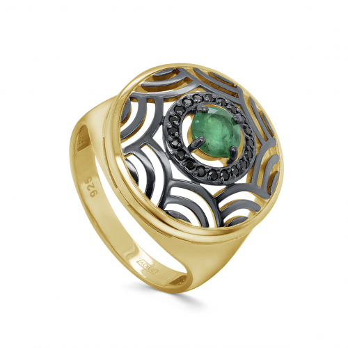 Великолепное кольцо 925 пробы, с применением технологии золочения и родирования. Кольцо входит в коллекцию " Саломея" от бренда Kabarovsky. Такое украшение не оставит вас незаметной и дополнит ваш образ. Средняя характеристика камней: 20 Фианит Круг 1,00|1 Изумруд Круг 5,00 3/3 0.442ct В комплект поставки входит: