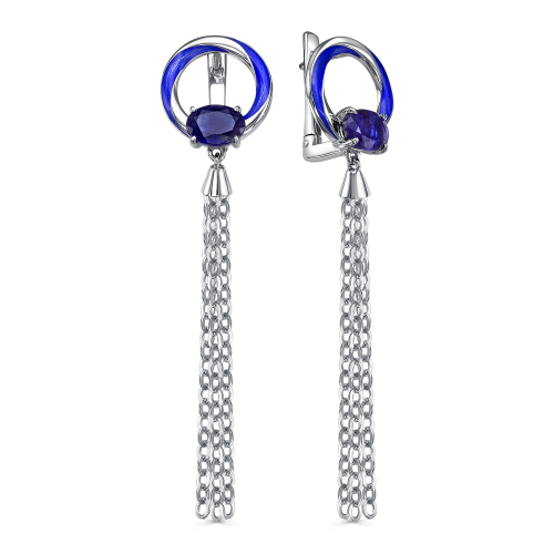 Удлинённые серебряные серьги с сапфиром, украшенные холодной эмалью, — это элегантное и изысканное украшение