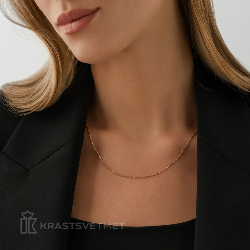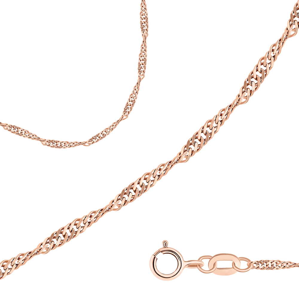 Красивая цепь из красного золота 585 пробы с плетением «Сингапур» и роскошной алмазной гранью порадует женщин, ценящих элегантность и качество