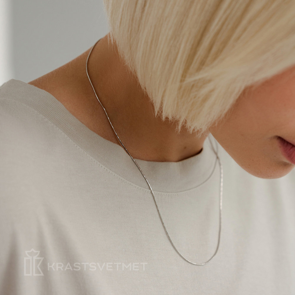 Эффектная полновесная цепь из белого золота 585 пробы выполнена уникальным плетением «снейк» с искрящейся алмазной гранью. Гладкая поверхность цепи переливается светом, придавая образу неповторимый шарм и утонченность. Отличный выбор для любителей сдержанной роскоши и классического стиля. Красиво выглядит как на мужчинах, так и на женщинах. Диаметр проволки 0,25 мм. Представлено брендом КРАСЦВЕТМЕТ.