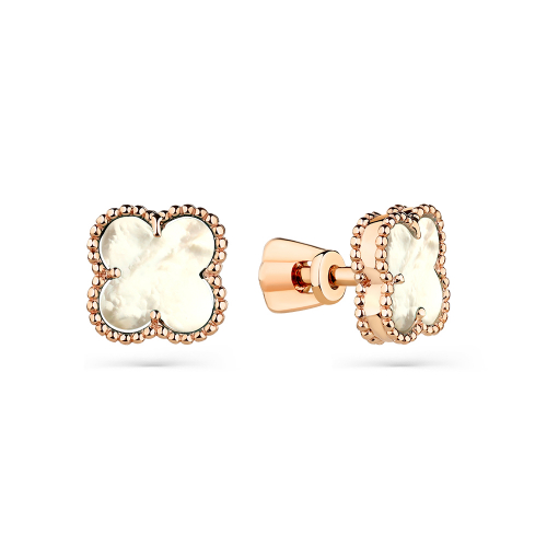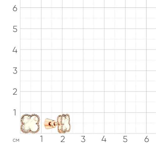 Нежные серьги - пусеты в виде цветка с перламутром, выполнены из красного золота 585 пробы
