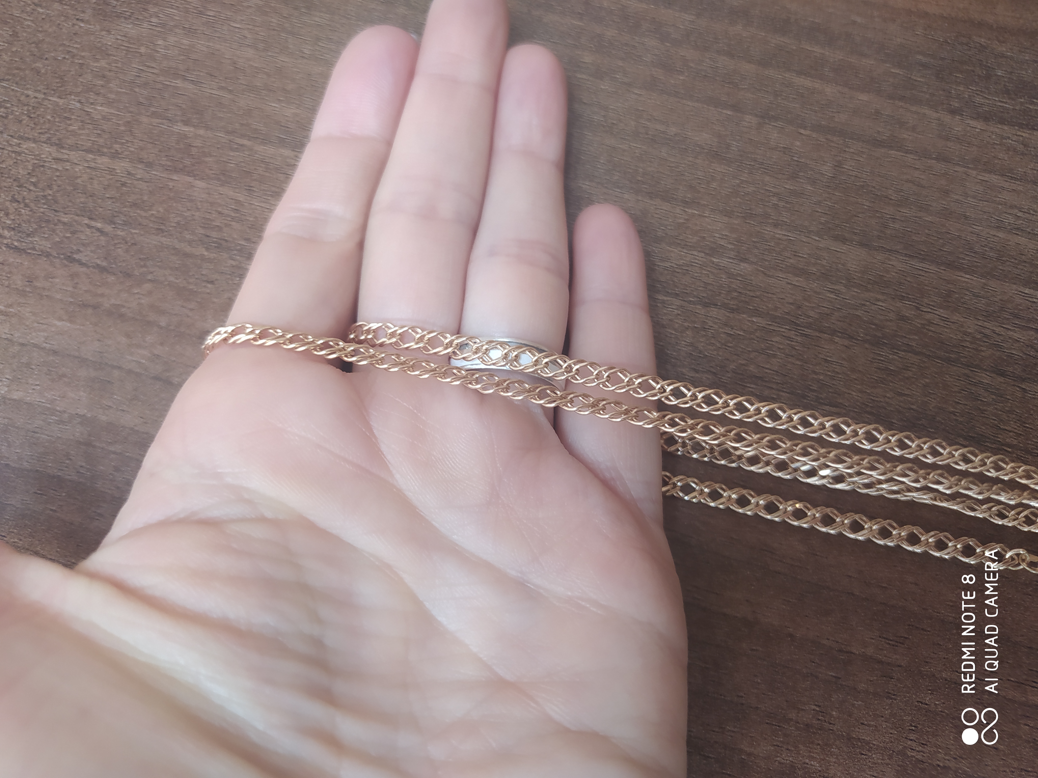 Поменяла свою старую цепочку на такую, хотела широкую. Претензий никаких нет по носке.