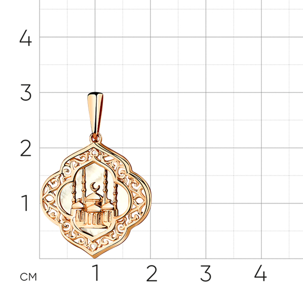 Мусульманская подвеска выполнена из красного золота 585 пробы, украшена великолепным перламутром